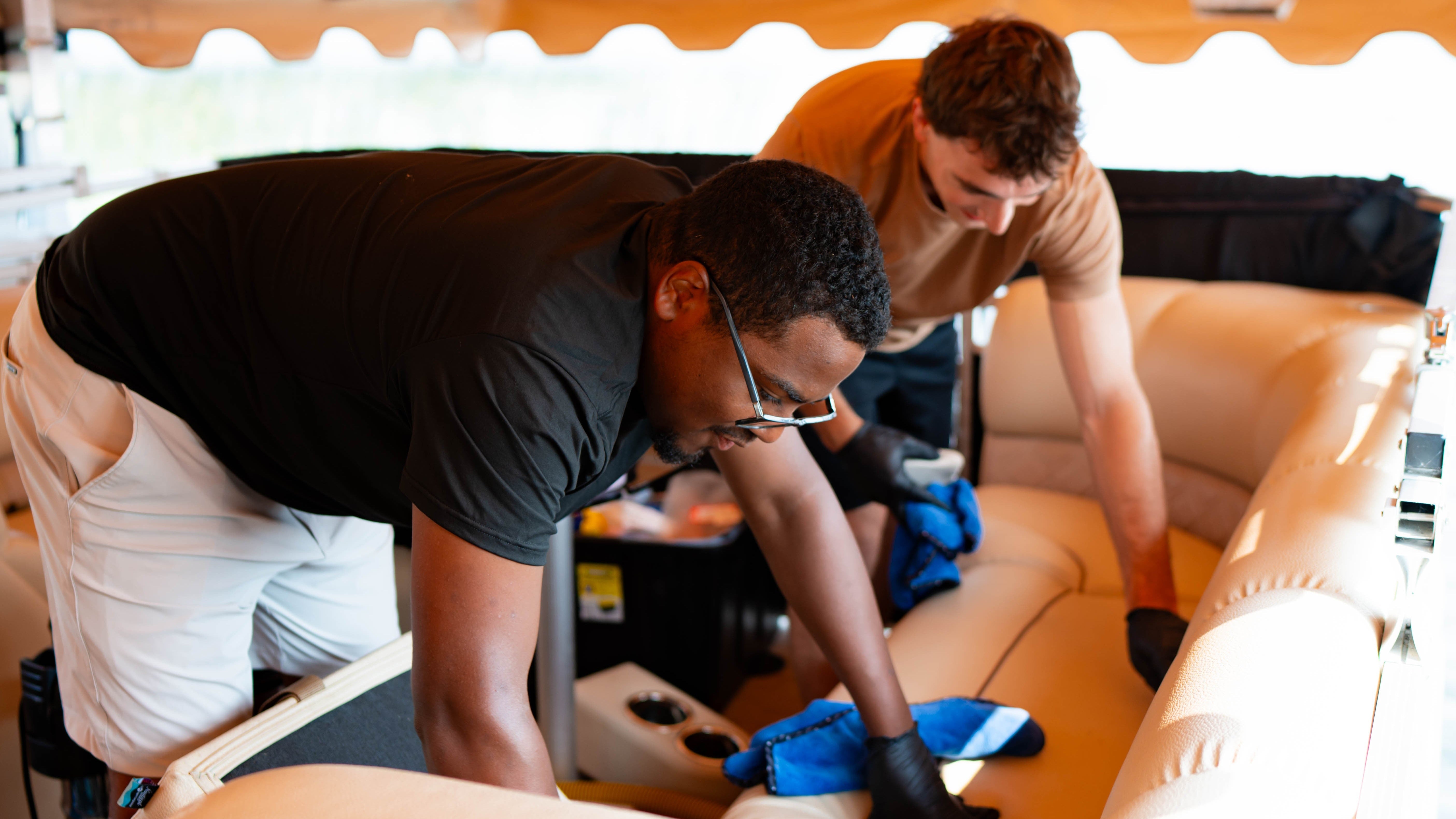 We are a mobile detailing business that goes to where your boat is located! Whether you're looking for a basic interior wash or a full exterior buff and wax, we deliver it to your boat on land or water. Making your boat look brand new wherever you are!